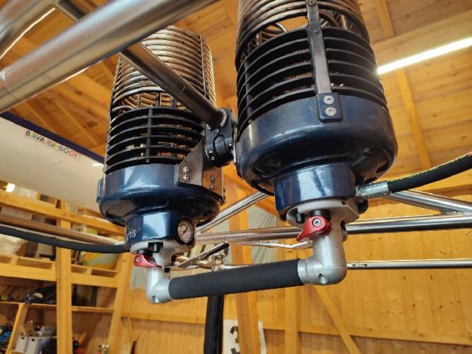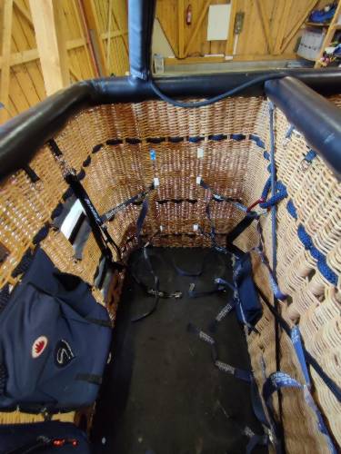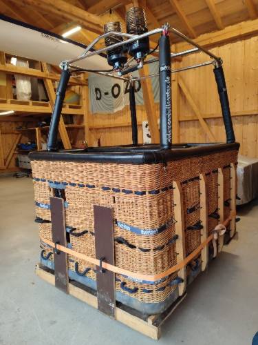 Kubicek K28T / Korb K28T / Brenner Ignis Plus 2-fach / Landeleine / Feuerlöschdecke / Feuerlöscher / 1. Hilfe / Handschuhtasche / Kombitasche / Brennerstützen / Startfessel / Brennerstützenpolster / Additional Straining Beams (Korbstabilisierung im Korb) / 2. Reihe Halteschlaufen außen / Vertical Side Wall Skids (vertikale Holzleisten in Landerichtung am Korb außen) / Reinforced Bottom Skids (Metallkanten zum Schutz vor Abnützung an den Bodenleisten)