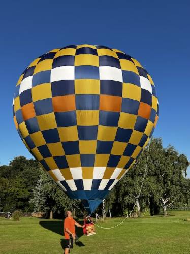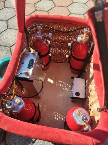 Der Korb ist wie neu hat einen Bölling Doppel Brenner mit einer Piezo E-Zündung für den Pilotbrenner .4 Stück 1 Liter Gasflaschen und eine Steuerbox mit Fernsteuerung und ein Halteseil für einen Notabwurf.Die Hülle hat eine große von 100m3 mit einen Hüllensack für den Transport. Die Hülle ist makellose und die Seile mit dem Flammtuch sind perfekt auf den Brenner Rahmen abgestimmt.