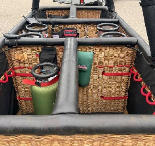 Korb: Lindstrand BA 293, Baujahr 1997. TT-Korb für 12+2 Personen, Dittel Korbantenne und UM Powerline Detector etc.