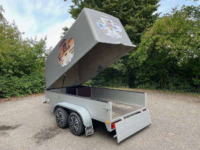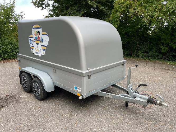 Doppelachse, abgelastet auf 1.000kg, Erstzulassung 03/2021, tadelloser Zustand mit dem Alter angemessenen Gebrauchsspuren, Halterung für Ventilator vorhanden (passend zum separat angebotenen Lindstrand 5,5PS). Preis 4.990 EUR - aktueller Neupreis um 6.000 EUR.