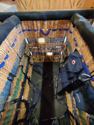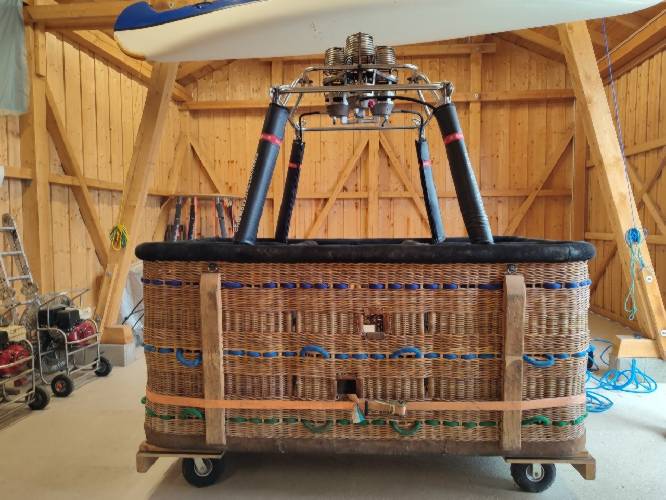 Ultramagic C-8 / Korb C-8 doppel T / Brenner MK 21 Dreifach / Landeleine / Feuerlöschdecke / Feuerlöscher / 1. Hilfe / Handschuhtasche / Kombitasche / Brennerstützen / Startfessel / Brennerstützenpolster / Pilotenrückhaltegurt / 2. Reihe Halteschlaufen außen / Vertical Side Wall Skids (vertikale Holzleisten in Landerichtung am Korb außen) / Basket Runners mit Kunststoff Gleitleisten.