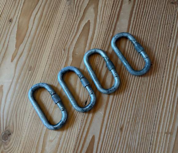 Vier Schroeder Karabiner, je 25 N, Stück 10 Euro, zuzüglich Versandkosten