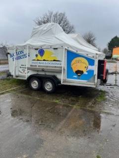 Für größere (1+12/1+16) Balione. Neue: 5 Reifen, 2 Achsen, TüV. Flachplane und Hoch Plane mit Brenner zufahren.