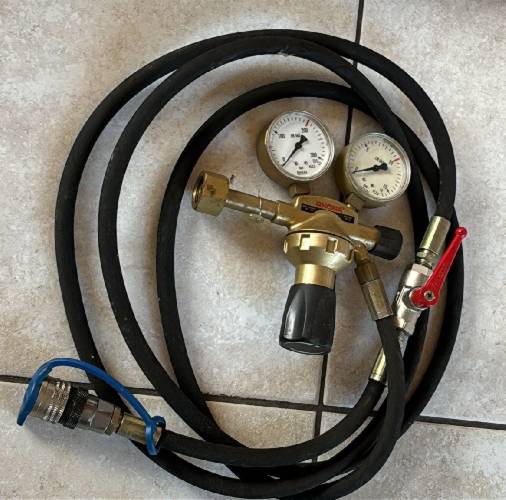Barely used filling fitting with pressure reducer, vent/shut-off valve and Tema coupling.
