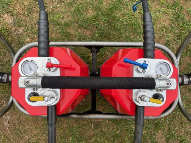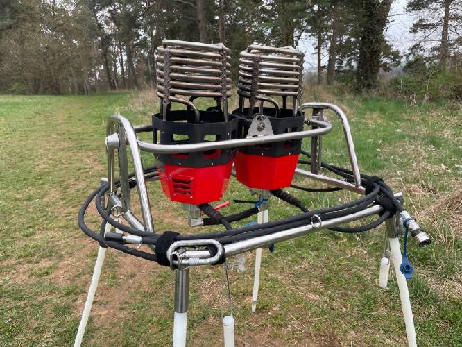 Biete einen roten Doppelbrenner FB6 mit TEMA/Lorch-Anschlüssen. Baujahr 2008 und seit 2010 an einem Schroeder Mistral gefahren mit Korbgröße IV. Betriebsstunden werden auf 300 geschätzt, Fahrten auf 220. LTP immer bei Schroeder, letzte große Brennerwartung 2024. Schläuche bis 04/2028. Preis 2.200 EUR.